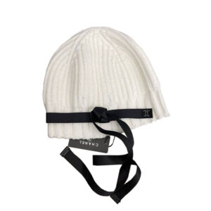 Chanel 24B Beanie Ivory White & Satin Ribbon Winter Hat