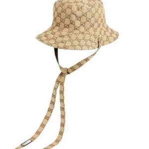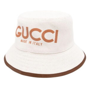 Gucci Made in Italy Print Beige Canvas Bucket Hat