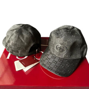 Gucci GG Logo Canvas Black Leather Baseball Cap