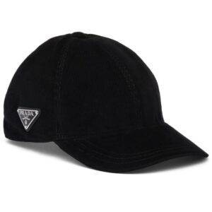 Prada Triangle Logo Corduroy Black Baseball Cap