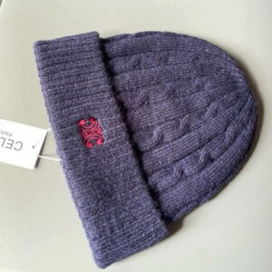 Celine Triomphe Logo Knit Wool Beanie Navy Hat