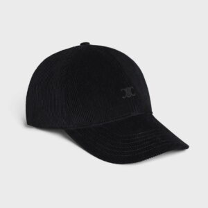 Celine Mini Triomphe Baseball Cap Corduroy in Black