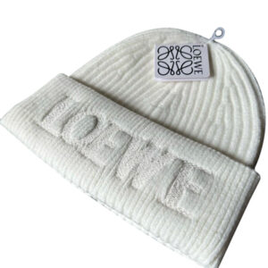 Loewe Logo Embroidery Beanie in Wool White Hat