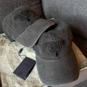 Prada Black Milano Embroidered Logo Baseball Cap Designer Hat