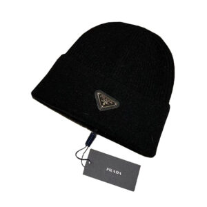Prada Triangle Logo Beanie Black Wool and Cashmere Beanie