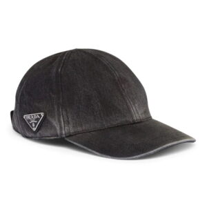 Prada Triangle Logo Black Denim Baseball Cap Mens