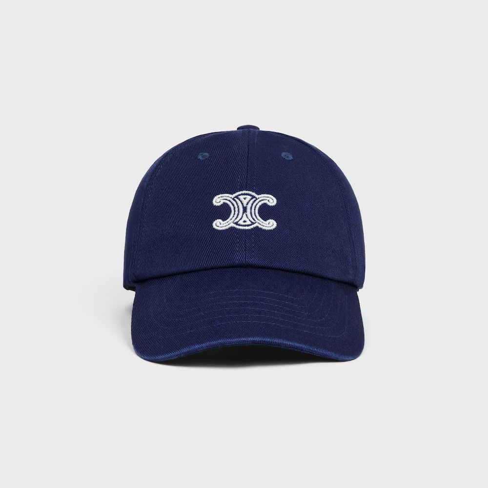 Celine Vivienne Navy & White Baseball Cap in Cotton Twill – Color : Navy & White – 100% Cotton – Triomphe Embroidery – Hexagonal Design – Adjustable Tab Condition : New with tag