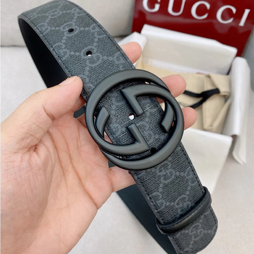 Gucci GG Black Buckle Mens/ Womens Black Leather Belt
