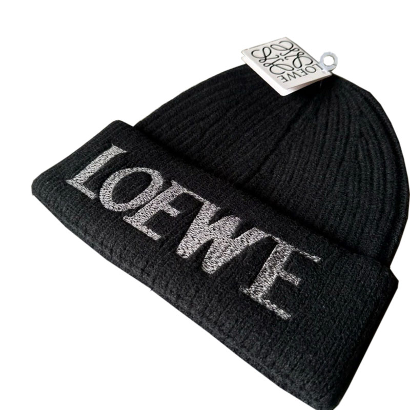 Loewe Logo Embroidery Beanie in Wool Black Hat
