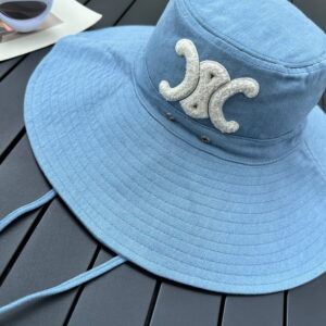 Celine Cotton Walking Hat Triomphe Patch in Denim