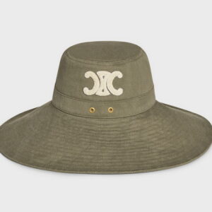 Celine Cotton Walking Hat Triomphe Patch in Khaki