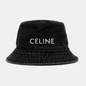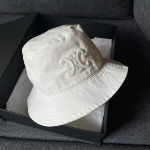Celine Logo Triomphe Gabardine White Bucket Hat